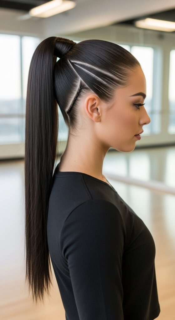 This look is all about the graphic detail. It turns your scalp into part of the style. It’s athletic, chic, and surprisingly easy to maintain. A few extra bobby pins along the part will keep every “zag” crisp all day.