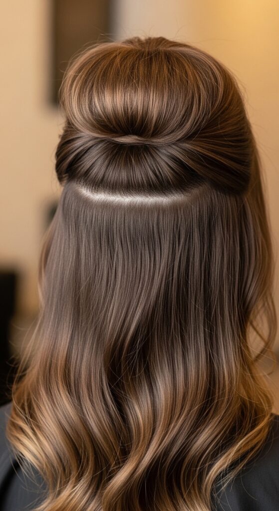 Your go-to half-up style just got an upgrade. Instead of casually pulling the top section back, gather the hair from one side of your zigzag part. This instantly creates more height and a more intentional shape.