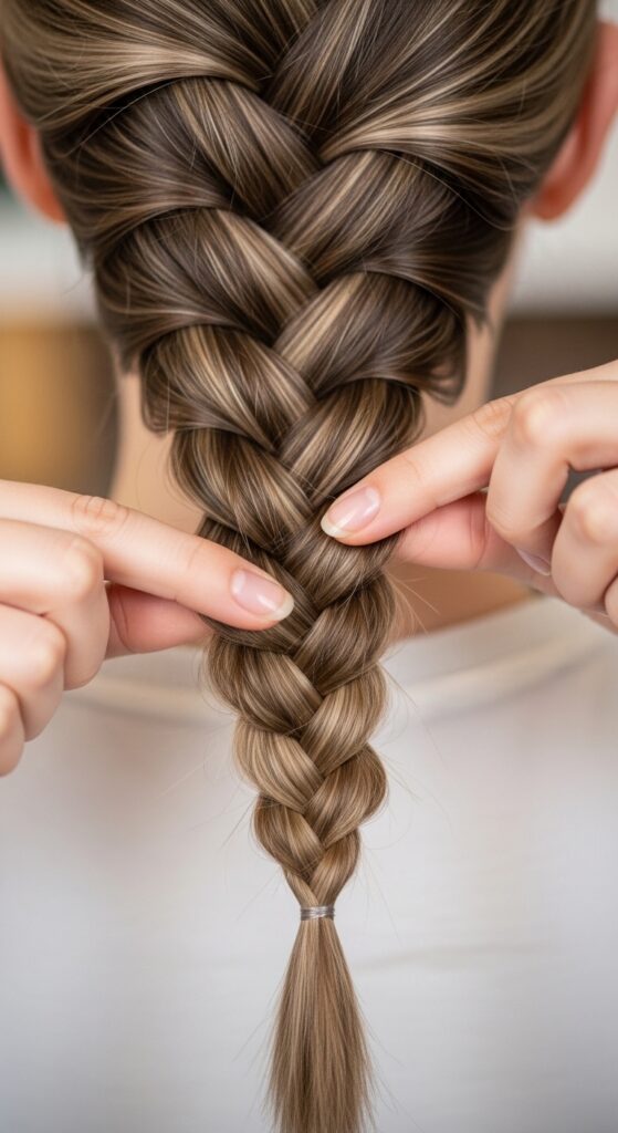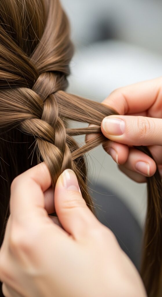 A flat braid can look a bit sad. The pro trick to making any braid look voluminous, expensive, and intricate is “pancaking.” This just means gently pulling on the edges of each braided section.