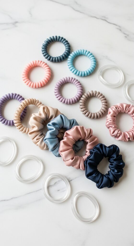 - Silk Scrunchies: Gentle and great for thicker hair or ponytail wraps.