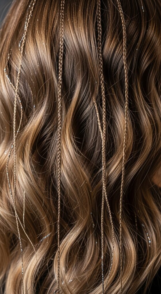 Glitchy glam hair is all about intentional imperfection and surprise texture. This technique uses tiny, disconnected feed-in braids (which are just tiny Dutch or French braids) placed randomly.
