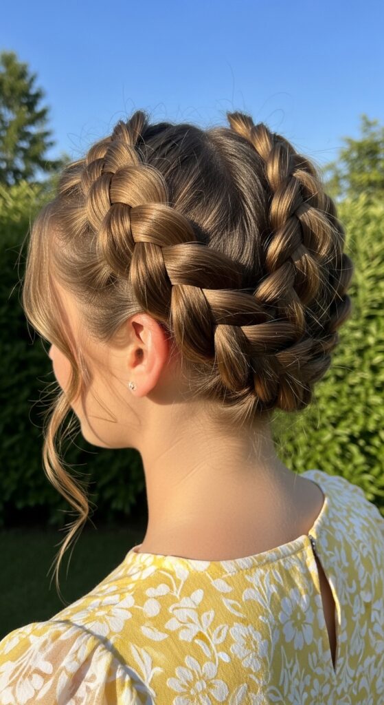 9. The Textured Crown: Triple Braid Updo Base