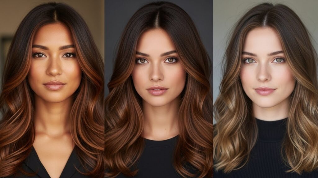 Cool Chestnut: A slight twist on the trend, this version tempers the traditional warmth with a hint of cool, neutral brown. It’s excellent for those with neutral skin tones who want dimension without the red or gold emphasis, offering a more modern, smoky brown result.
