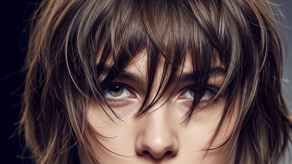 The Shag-Integrated Choppy Bang: The ultimate expression of this trend. Here, the choppy bangs are cut as an integral part of a full shag or mullet haircut, connecting seamlessly with the layers throughout the rest of the hair for a unified, rock-and-roll look.