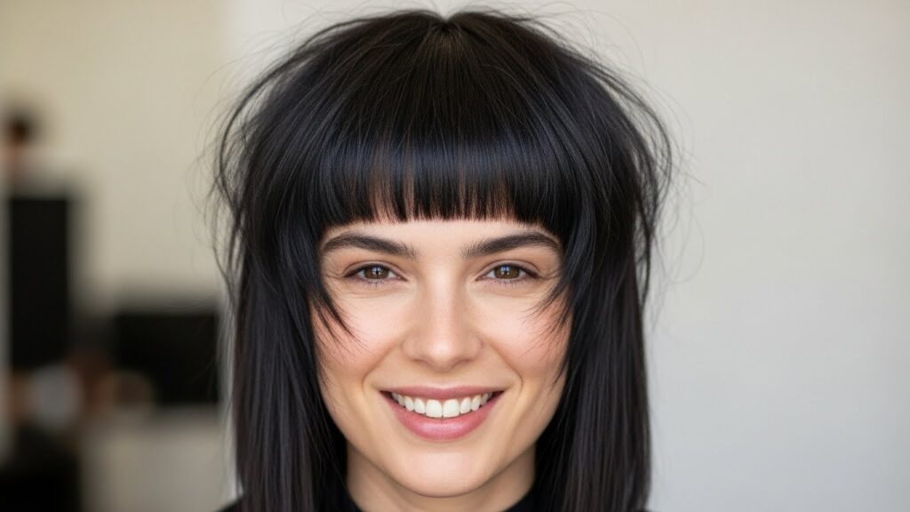 One of the greatest strengths of choppy bangs is their democratic appeal. The textured, broken-up line is flattering on more face shapes than a severe blunt bang.
