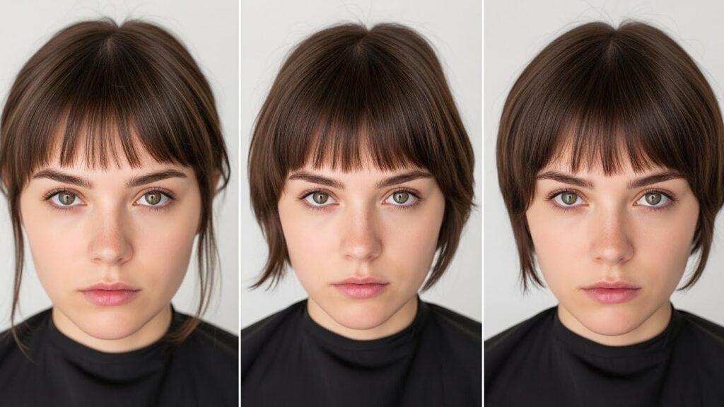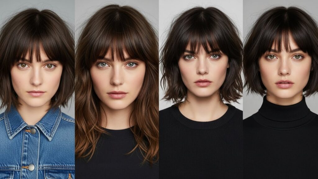 The Heavy Choppy Bang: For those who love the impact of a full fringe but crave the texture. This style maintains more density and width but breaks up the hemline with heavy internal layering and piece-y ends. It’s bold but not blunt.