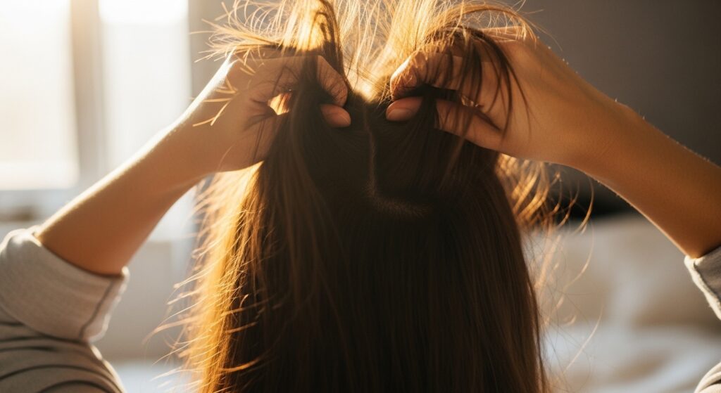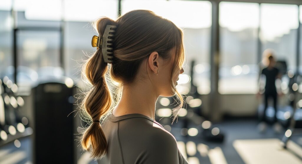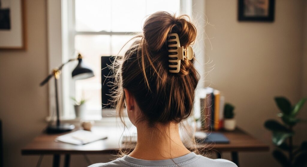 When you secure it with the claw, don’t pull everything tight. Let some wispy pieces fall around your face and neck. This combo creates the illusion of thicker, fuller hair instantly.