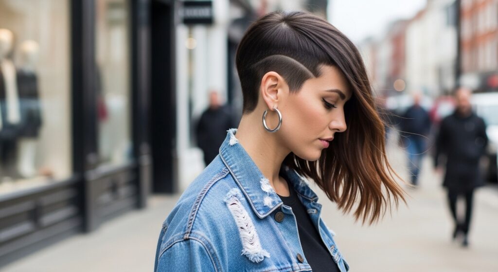 This creates a beautiful, diagonal line that follows the energy of your cut. It keeps hair out of your face while showing off that fantastic shape. It feels very modern and editorial.