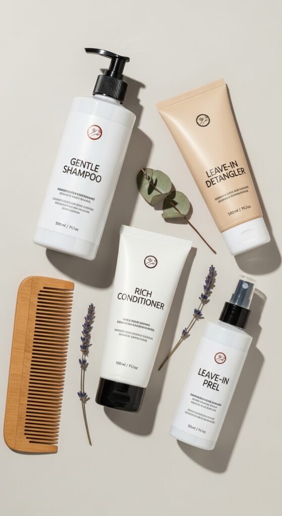 - Cleanse with a gentle, moisturizing shampoo.
