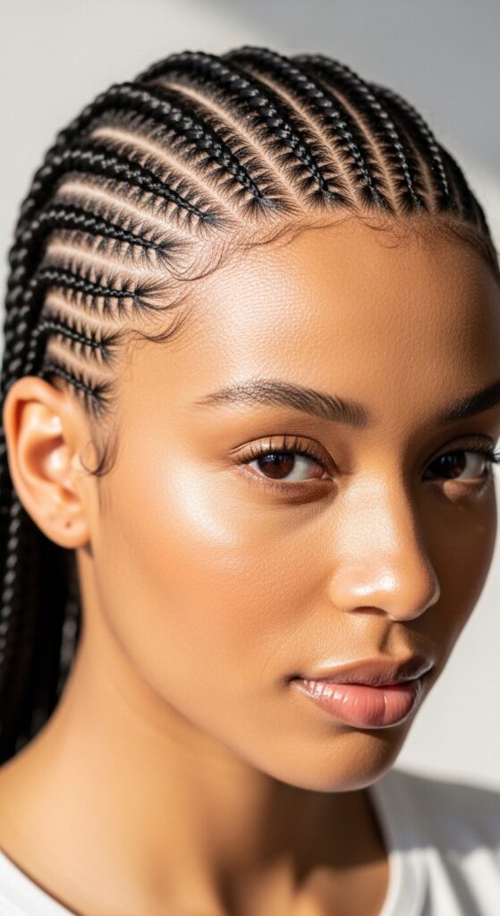 Not every braider specializes in this specific, lighter approach. You need someone who understands tension control. Look at portfolios – you want to see healthy scalps and neat, but not painfully tight, braids.