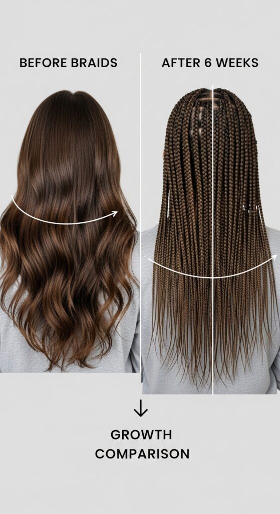 Your hair gets a break, allowing it to retain length. Just remember, the protection comes from the gentle installation and maintenance. If your braids are too tight, you’re defeating the purpose. Healthy braids equal growth.