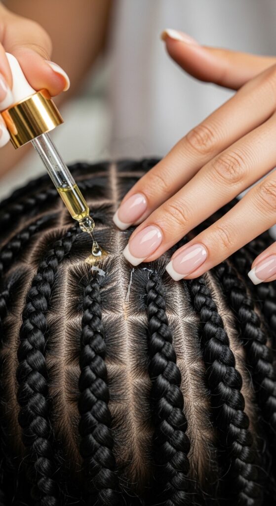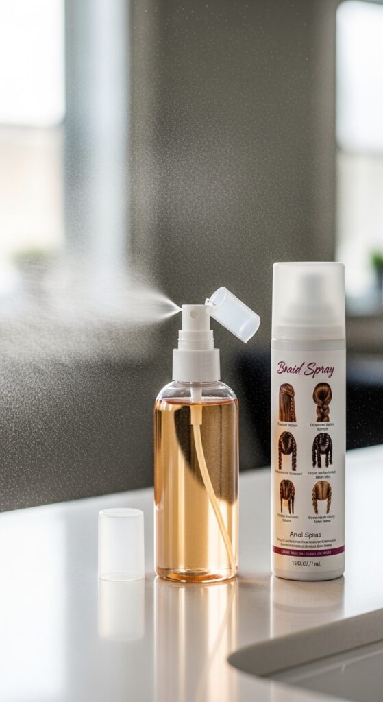 - Lightly mist your braids and scalp.