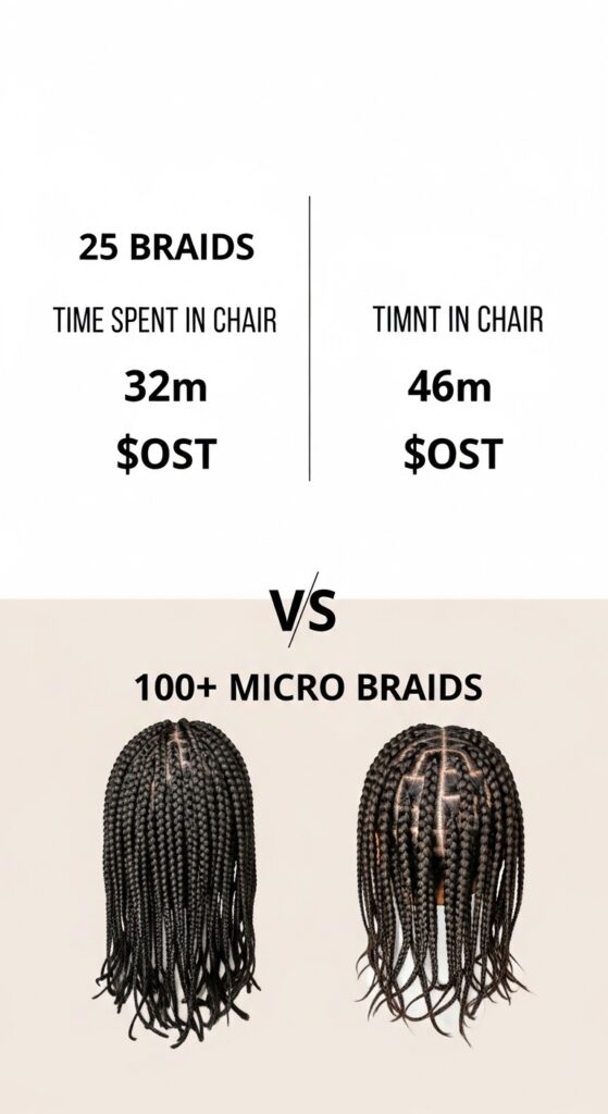 Let’s break it down practically. Fewer braids mean less time in the salon chair, which often translates to a lower cost. You’re paying for skill, not just marathon labor.