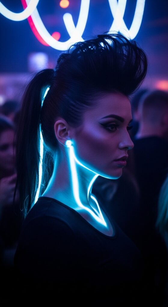This is where you get creative. For nighttime, play with textures that expose the color. Big, voluminous curls or waves will naturally separate and show the neon. A sleek, high ponytail or space buns put the entire underlayer on display.