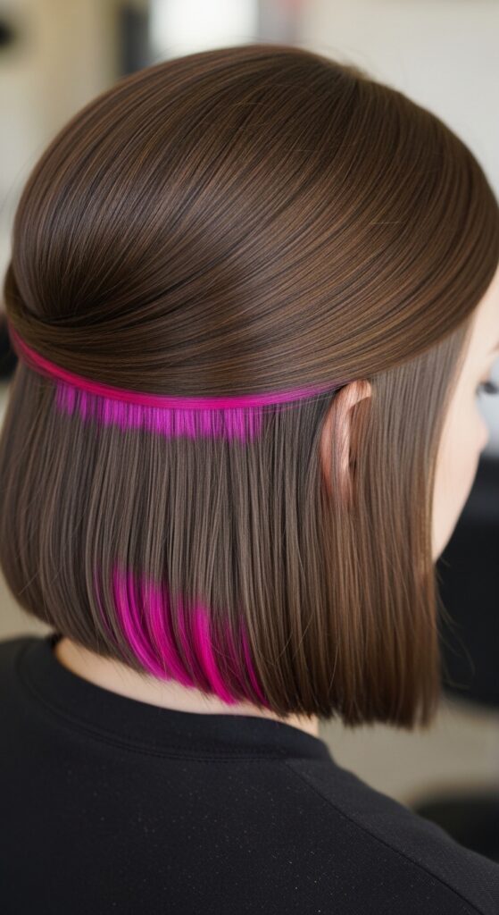This is my favorite contrast. Imagine the ultimate old money hair aesthetic—a perfect, healthy, glossy bob. It looks expensive and timeless. Now, add a secret neon underlayer. It’s the ultimate “I have fun, too” signal.