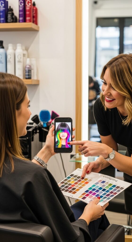 Walking into the salon prepared is key. Don’t just say “neon underneath.” Bring clear photos of the placement and the shade you want. Use the term “underlighting” or “peekaboo color.” Specifically mention the “Confidence 23” technique—it signals you know the precise, sectioned approach.