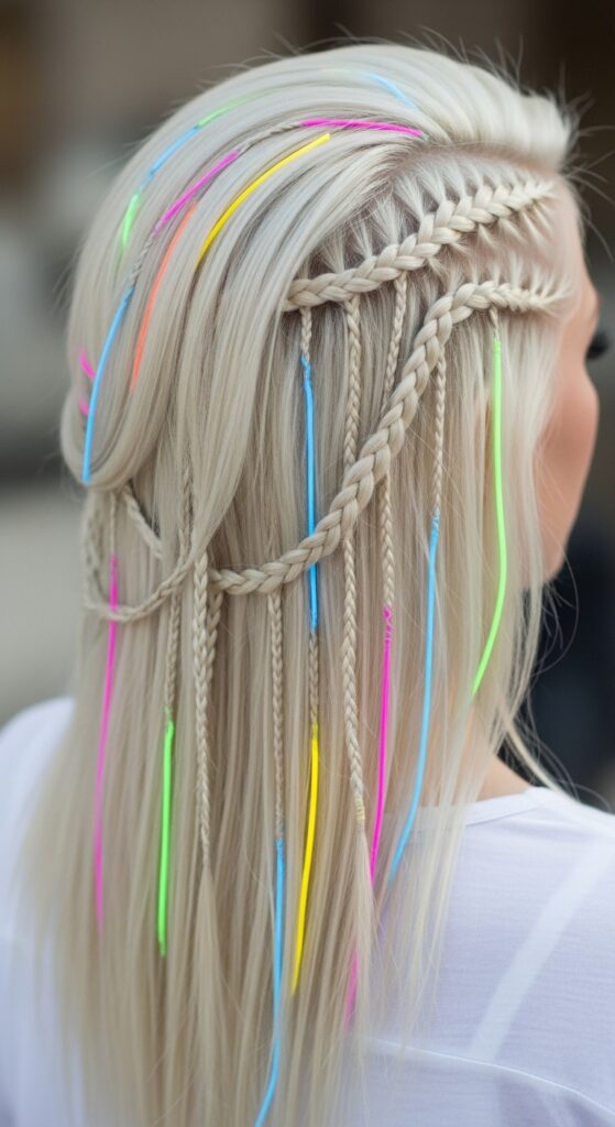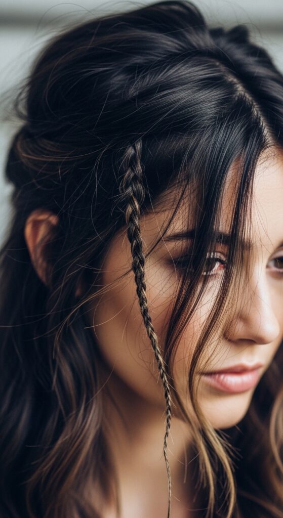 You can “install” small, decorative braids or colored pieces exactly where you want them, creating that intentional, digital-error-inspired look with real hair.