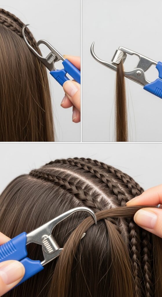 Want ombre braids or a pop of fantasy color? The crochet tool is your best friend for color blending. You can easily switch between different colored extension packs mid-braid.