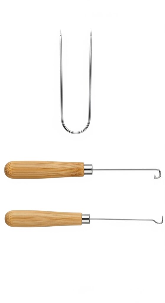 Not all hooks are created equal. Look for one with a comfortable handle—you’ll be holding it for a while. The hook should be smooth, not too sharp, to avoid snagging.