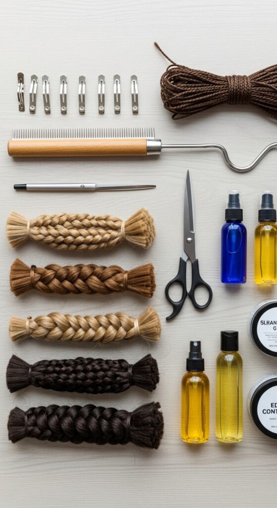 - Edge control or gel for sleek bases.