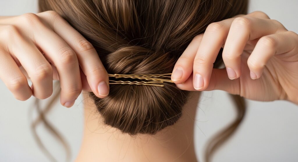 Finally, not using enough bobby pins. Use more than you think you need, and always pin in opposite directions so they lock together. This prevents sliding.