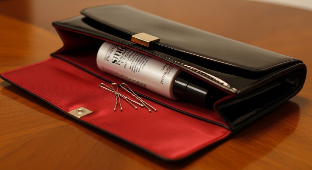 Toss a few extra bobby pins and a travel hairspray in your bag. If you feel a section slipping after a few hours, find a bathroom, give it a quick pin, and mist lightly.