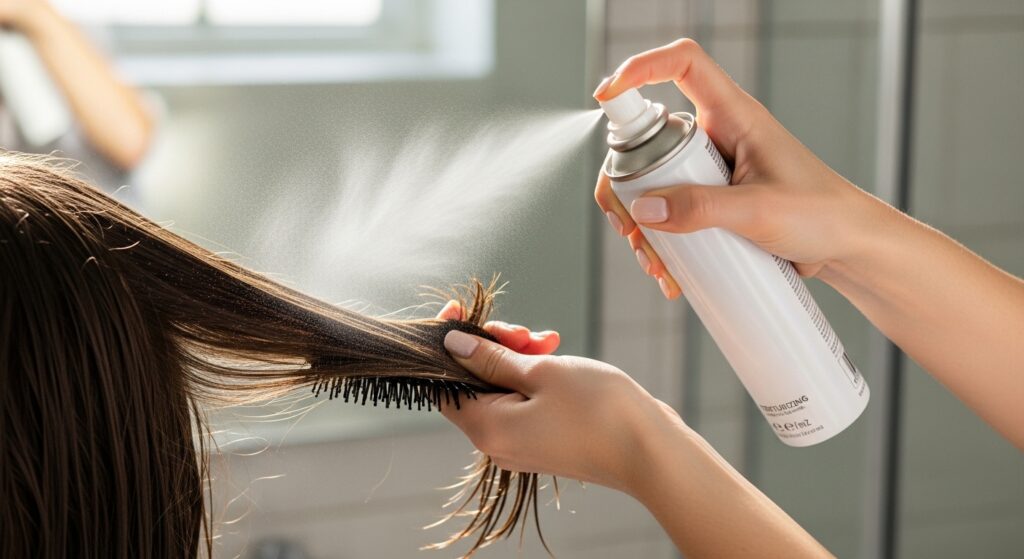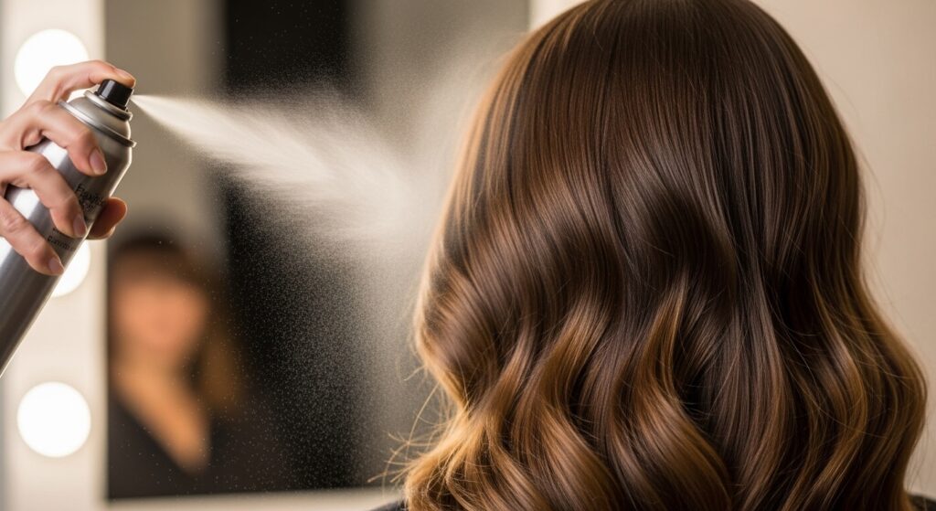 To lock in the texture without making it stiff, use a flexible-hold hairspray. Hold the can about ten inches away and give your hair a light, all-over mist.