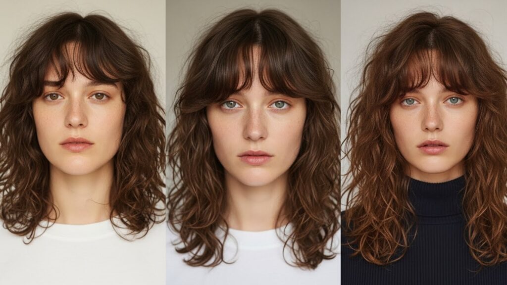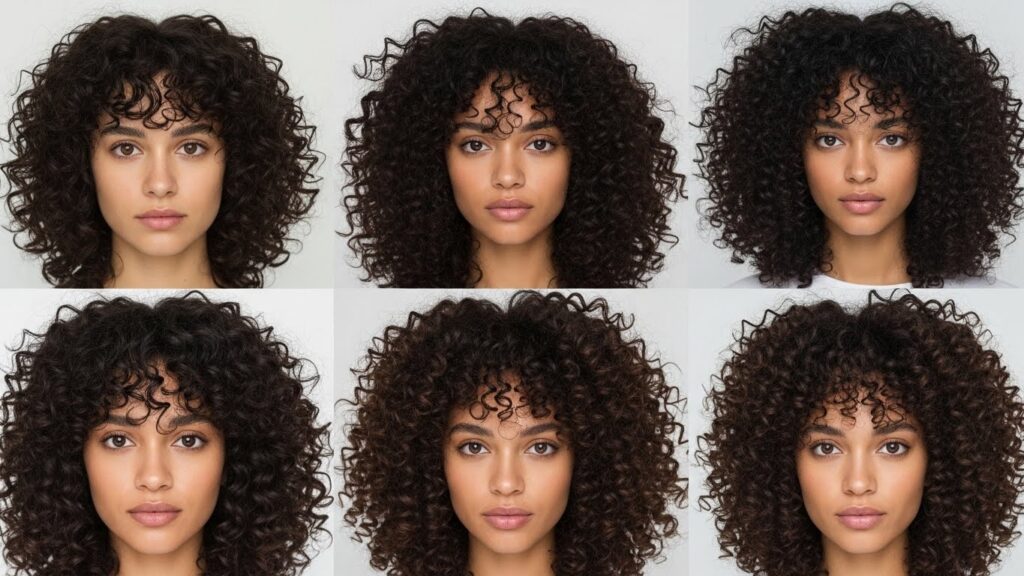 The Curly Curtain Bang: The most universally flattering and low-commitment option. These are longer bangs parted in the middle that frame the sides of your face, blending into the rest of your hair. They’re perfect for first-timers as they can easily be styled away if desired. They add a soft, romantic touch to any curly look.
