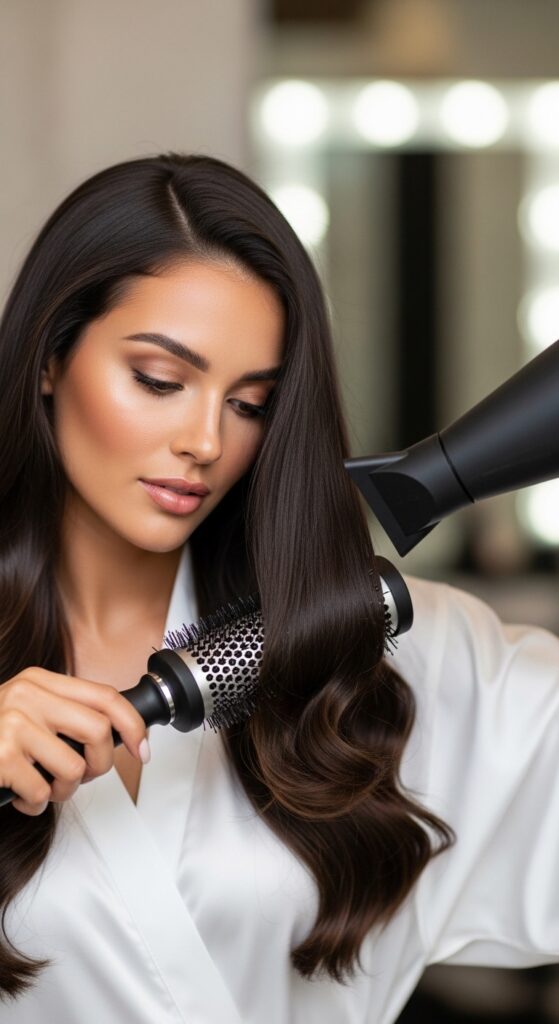 This method ensures no strand is left behind. It primes your hair, making it more manageable and ready for any hot tool, whether you’re going for an old money hair vibe or something more edgy.