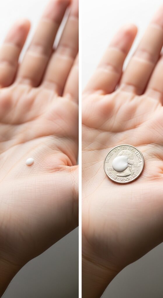 - Dispense a quarter-sized amount (for medium-length hair) into your palm.
