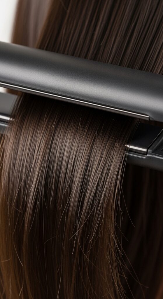 For pin-straight styles or a sharp quiet luxury bob, the flat iron is your tool. But it’s also the most damaging. After blow-drying, apply a *tiny* bit more cream to any particularly dry sections.