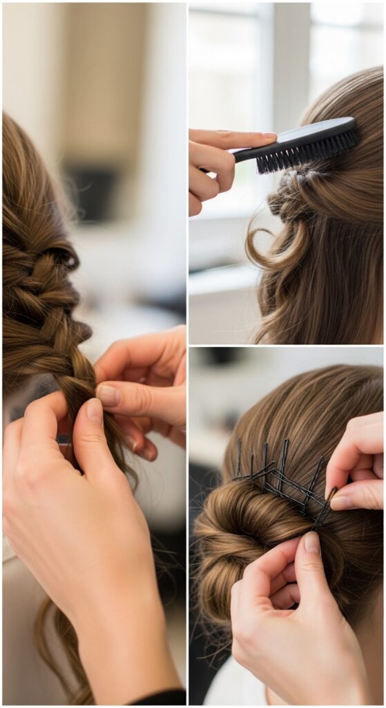 To go from day to night, this style has your back. Carry a few extra bobby pins and a travel hairspray. If the braids loosen, you can often tighten them by gently pulling sideways on the outer loops.