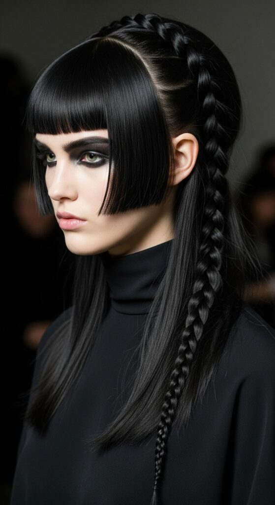 The hime cut is all about dramatic, straight-across blocks of hair. If you have this cut or something similar, this braid style beautifully highlights those graphic lines.