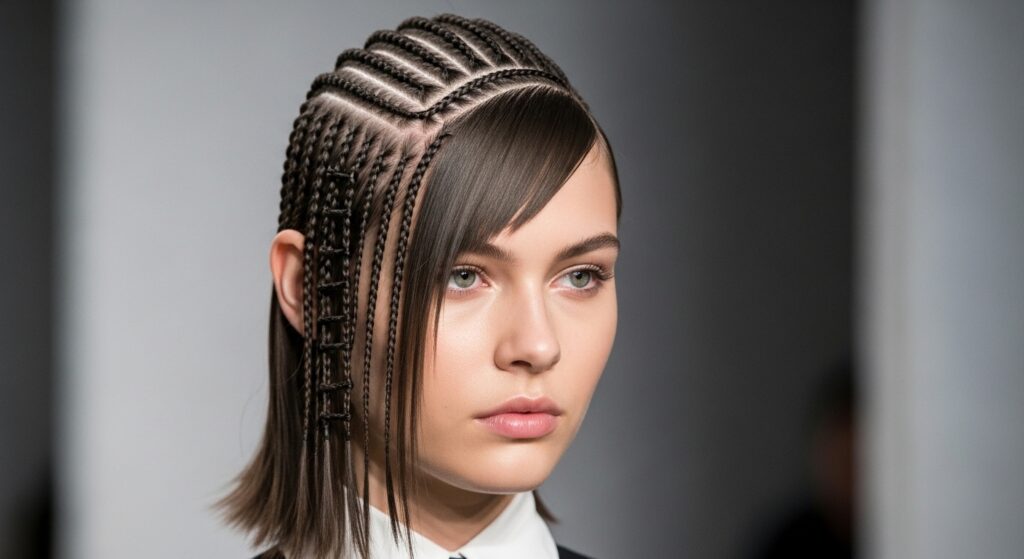 This is where it gets fun. This base style is a chameleon. Pair it with dramatic makeup for a vampire haircut feel. Add tiny gold cuffs to the braids for a quiet luxury bob twist.