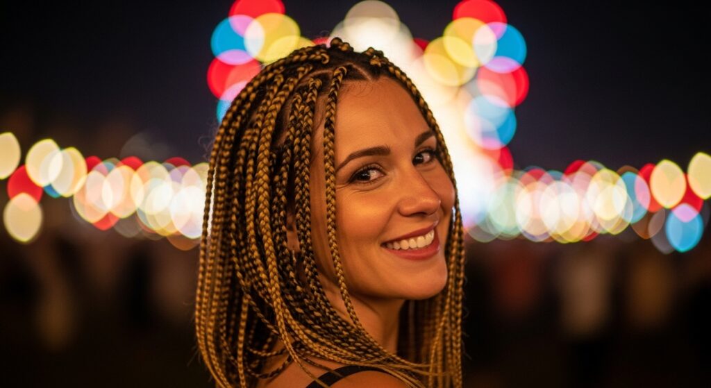 Box braids are a festival powerhouse. They section your hair off completely, shielding each strand. This is a great option if you have natural hair or just want ultimate protection.