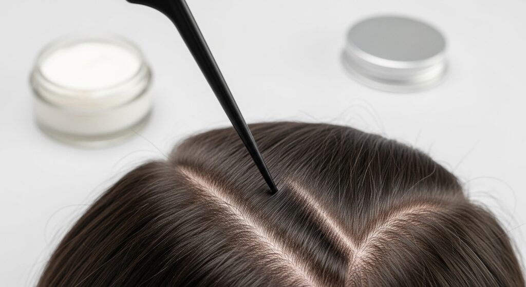 This creates a slight barrier. At night, use a damp cloth or a cleansing wipe to gently wipe along your parts and hairline before re-applying.