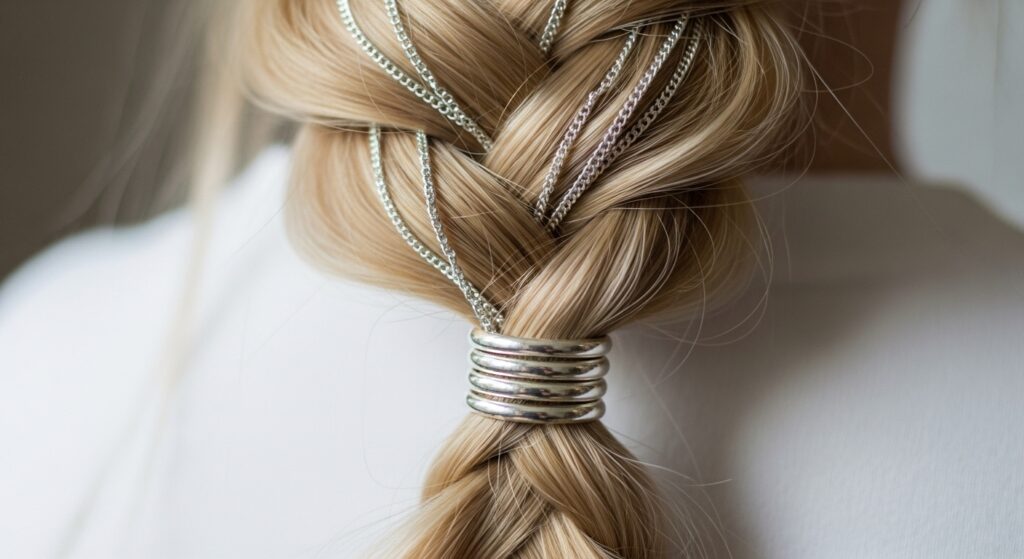 This is where your look goes from simple to stellar. Weave in some colored threads, ribbon, or even thin chains. Add claw clips or pearls along the braid.