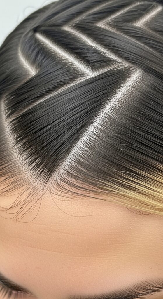 This pattern is a fantastic match for an asymmetrical lob of braids or when you want to incorporate a bold undercut. It gives off major glitchy glam hair vibes—intentionally disrupted and utterly cool.