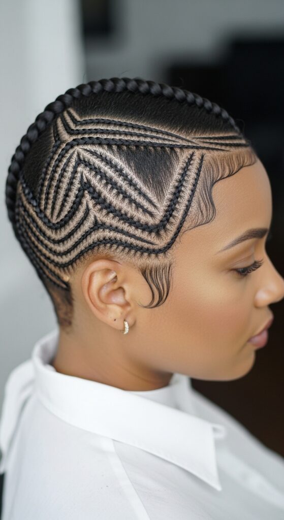 Think geometric shapes on the side or curved partings around the hairline. It’s a low-maintenance, high-style look that proves length doesn’t define impact.