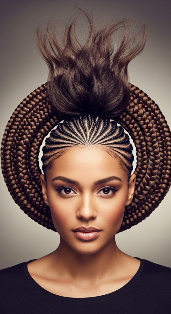 Braids can flow from the points of the triangles, creating sharp lines and impressive depth. This design is a bold step away from the ordinary and feels very fresh for upcoming 2026 hairstyles trends.