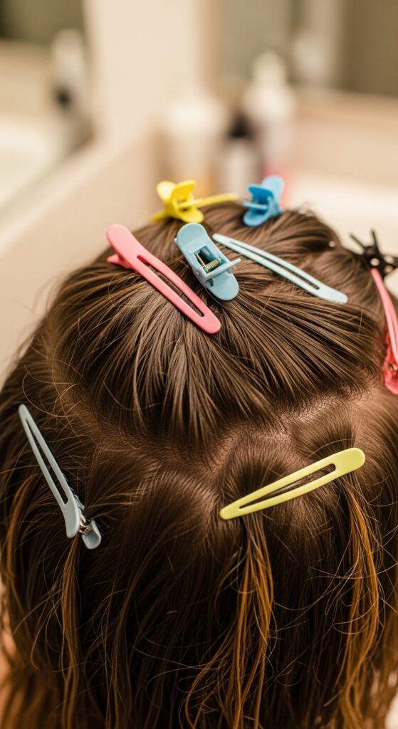 Let your hair dry with the clips in (you can diffuse over them). Once dry, remove them. This gives you instant, lasting volume at the crown, which is perfect for adding drama to any style.