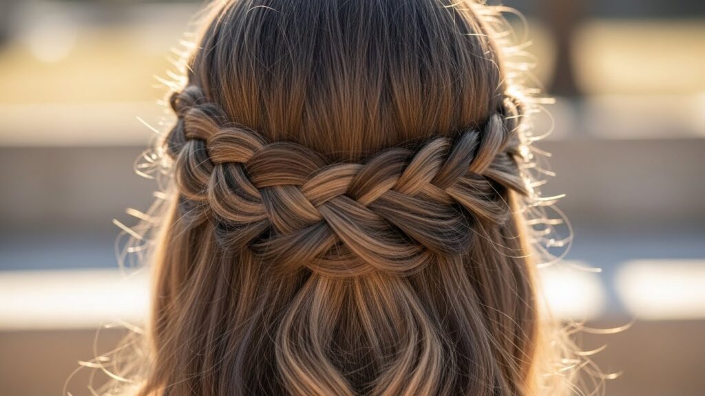 Alternatively, create a single, thicker braid at the back, just on the top layer of your hair, and let the rest flow free. This “peek-a-boo” braid adds wonderful texture and interest to an otherwise simple down-do. Remember, the braid doesn’t need to be perfect; a slightly loose, imperfect one often looks more intentional and romantic.