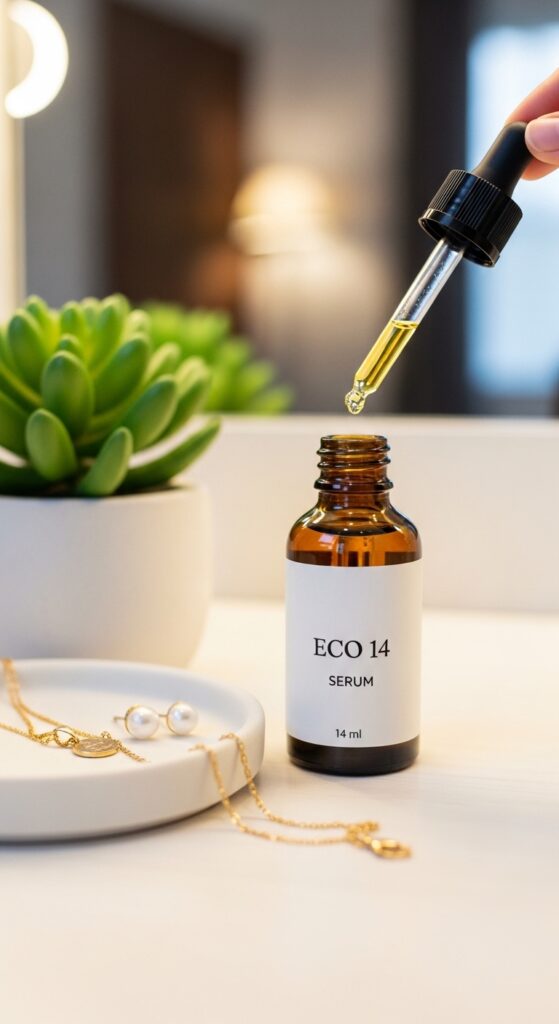 You can find Eco 14 directly on their website or through select clean beauty retailers online. The price point is an investment, but a bottle lasts a long time since you use so little per application.