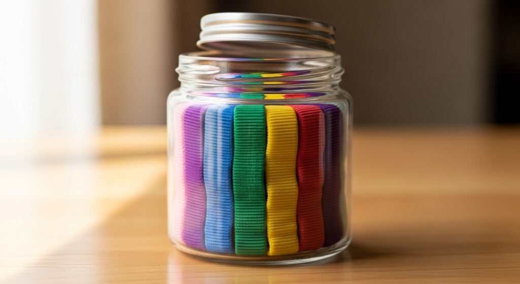 If you’re crafty, this is a fun weekend project. Use old t-shirts, fabric scraps, or leftover ribbon to make your own hair elastics. You can simply cut strips of t-shirt material and tie them, or sew simple fabric tubes.