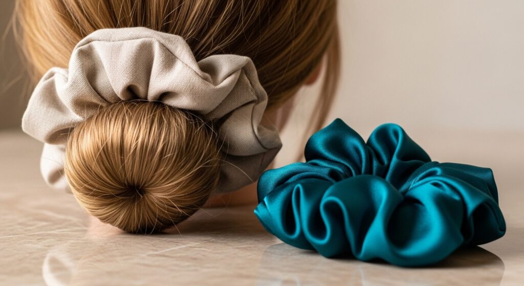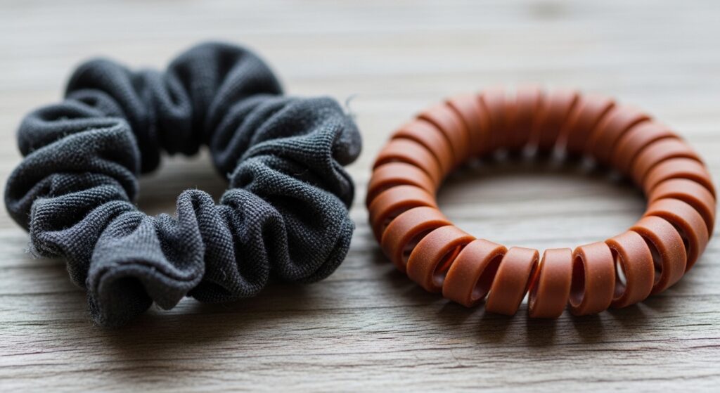 This is your new best friend. Natural rubber elastics, often coated in organic cotton, are a game-changer. They have a strong, smooth hold without biting into your hair. I find they cause way less creasing and damage.