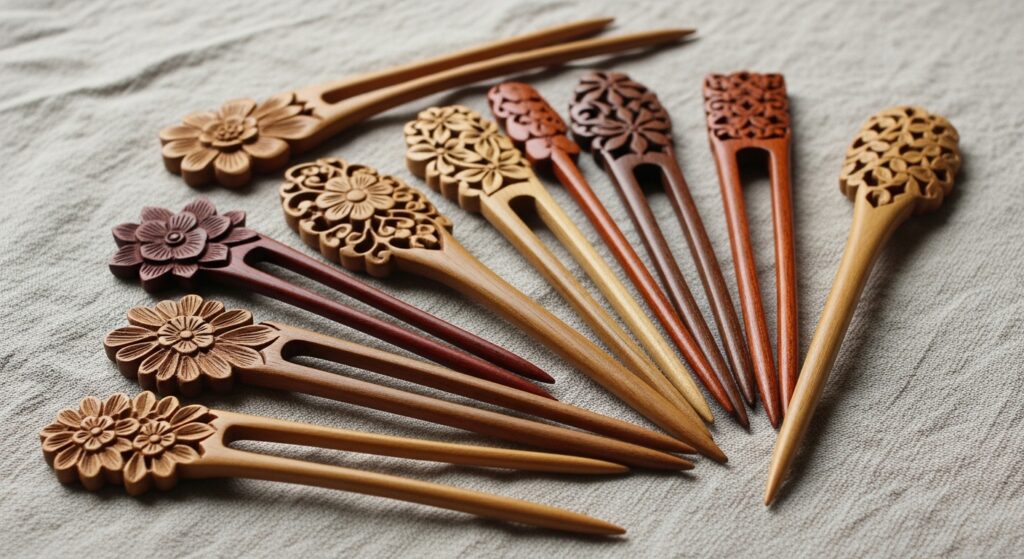 Bamboo is a fantastic renewable resource. Wooden hair pins and sticks are sturdy, have a beautiful natural finish, and provide a secure hold. They add an earthy, artistic touch to any hairstyle, from a messy bun to a detailed crown braid.