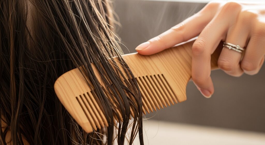 For wet hair or super curly textures, a wide-tooth comb is non-negotiable. A wooden or sandalwood comb is the ultimate eco-choice. It glides through hair with less static and breakage than plastic.