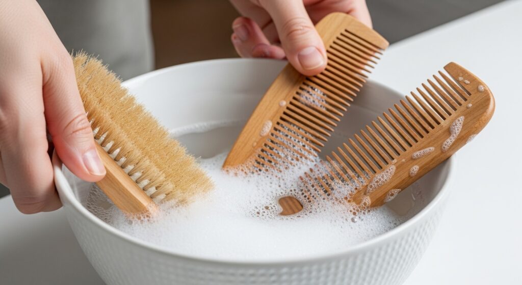 To make your tools last, clean them regularly. For wooden pins, combs, and brushes, use a gentle soap and warm water. Avoid soaking them for too long—just a quick wash and rinse.