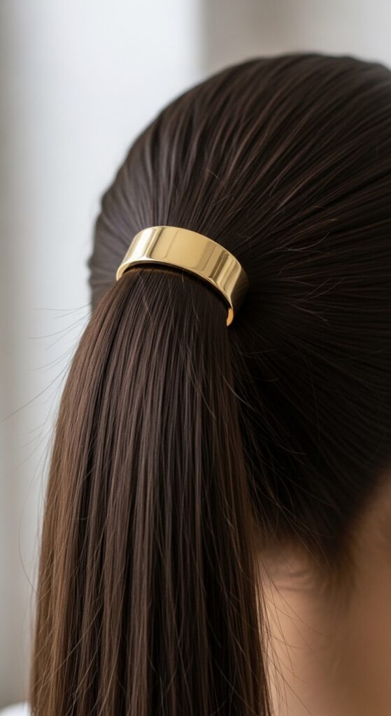 Accessories are a cheat code. Sliding a chic ponytail cuff over your hair tie instantly adds polish and hides the tie. Look for minimalist metal cuffs or fabric scrunchies for a different texture.