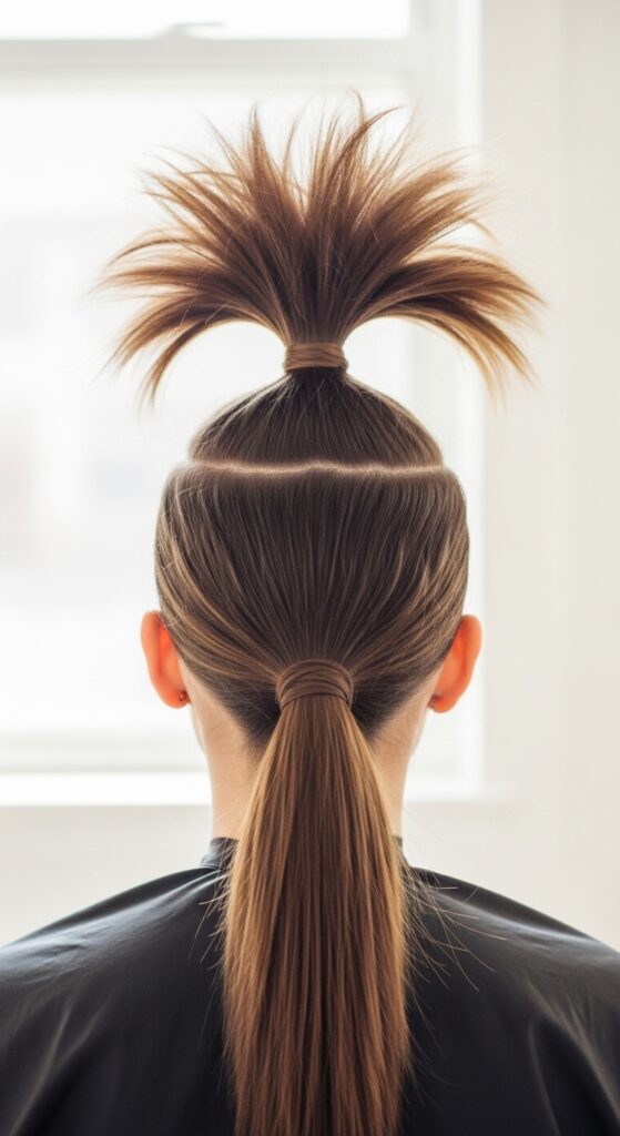 This creates unbelievable height and a fun, stacked effect. It’s a statement look that feels very now and is a cool take on the glitchy glam hair trend—mixing structure with a little playful chaos.